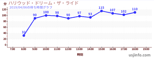 • ハリウッド・ドリーム・ザ・ライド$B$N(B2019年04月06日の待ち時間
