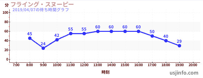 • フライング・スヌーピー$B$N(B2019年04月07日の待ち時間