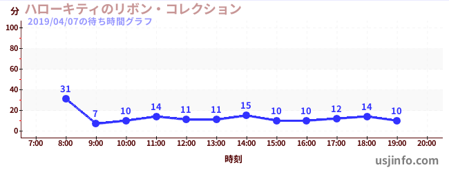 • ハローキティのリボン・コレクション$B$N(B2019年04月07日の待ち時間