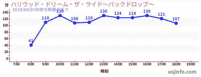 • ハリウッド・ドリーム・ザ・ライド〜バックドロップ〜$B$N(B2019年04月07日の待ち時間