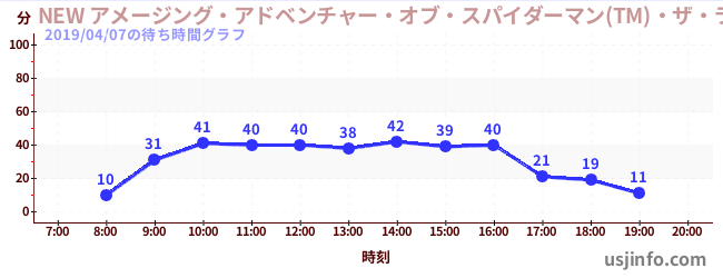 • NEW アメージング・アドベンチャー・オブ・スパイダーマン(TM)・ザ・ライド 4K3D$B$N(B2019年04月07日の待ち時間