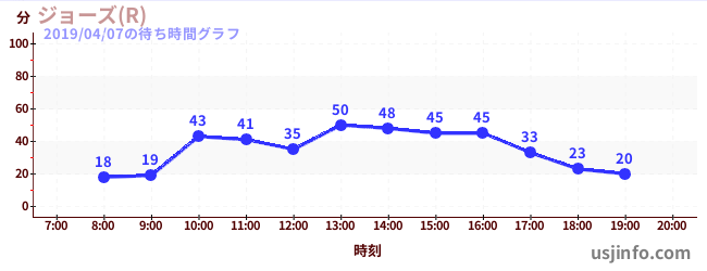 • ジョーズ(R)$B$N(B2019年04月07日の待ち時間