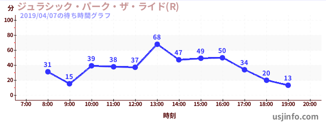 • ジュラシック・パーク・ザ・ライド(R)$B$N(B2019年04月07日の待ち時間