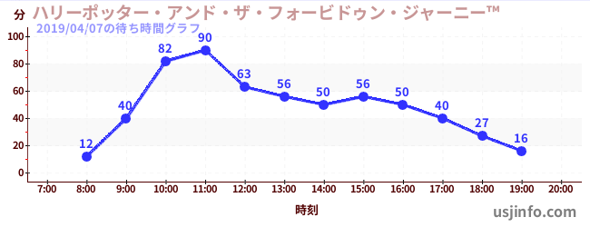 • ハリーポッター・アンド・ザ・フォービドゥン・ジャーニー™$B$N(B2019年04月07日の待ち時間