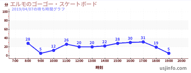 • エルモのゴーゴー・スケートボード$B$N(B2019年04月07日の待ち時間