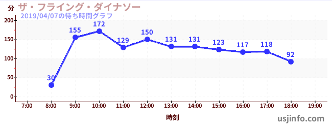 • ザ・フライング・ダイナソー$B$N(B2019年04月07日の待ち時間