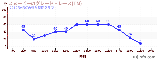 • スヌーピーのグレード・レース(TM)$B$N(B2019年04月07日の待ち時間