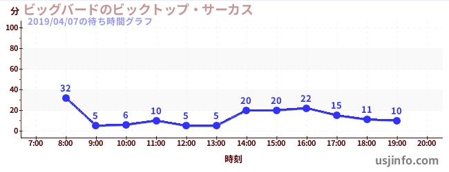 • ビッグバードのビックトップ・サーカス$B$N(B2019年04月07日の待ち時間