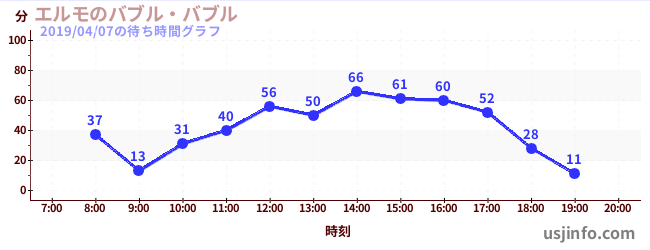 • エルモのバブル・バブル$B$N(B2019年04月07日の待ち時間