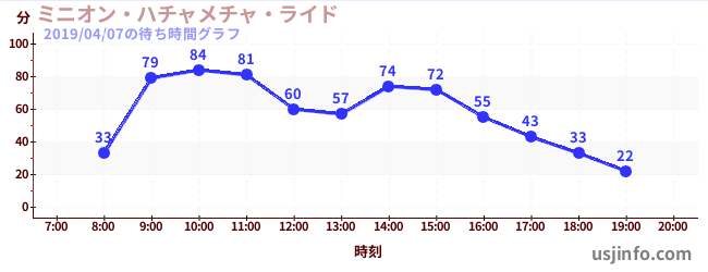 • ミニオン・ハチャメチャ・ライド$B$N(B2019年04月07日の待ち時間