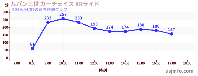 • ルパン三世 カーチェイス XRライド$B$N(B2019年04月07日の待ち時間