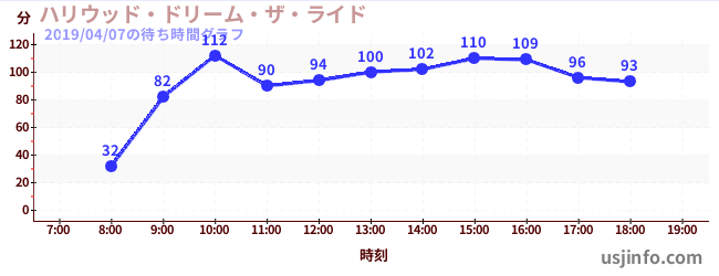 • ハリウッド・ドリーム・ザ・ライド$B$N(B2019年04月07日の待ち時間