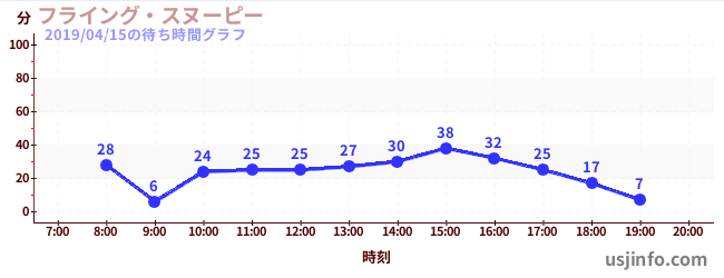 • フライング・スヌーピー$B$N(B2019年04月15日の待ち時間