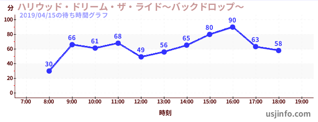 • ハリウッド・ドリーム・ザ・ライド〜バックドロップ〜$B$N(B2019年04月15日の待ち時間
