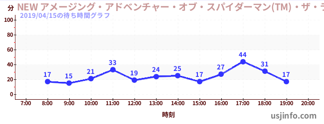 • NEW アメージング・アドベンチャー・オブ・スパイダーマン(TM)・ザ・ライド 4K3D$B$N(B2019年04月15日の待ち時間