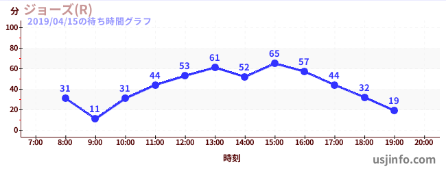• ジョーズ(R)$B$N(B2019年04月15日の待ち時間