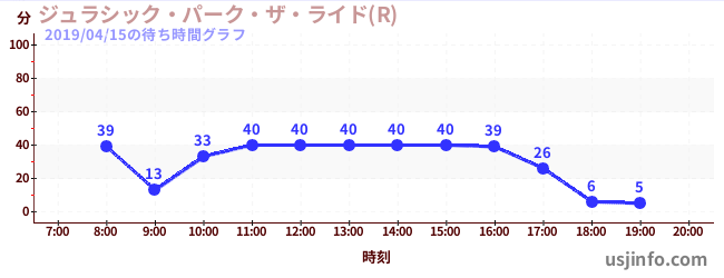 • ジュラシック・パーク・ザ・ライド(R)$B$N(B2019年04月15日の待ち時間