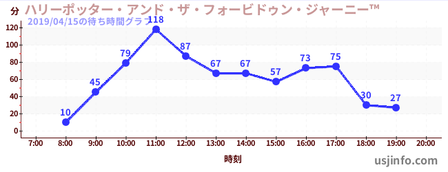 • ハリーポッター・アンド・ザ・フォービドゥン・ジャーニー™$B$N(B2019年04月15日の待ち時間