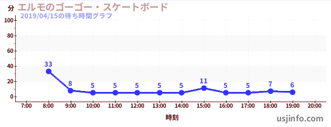 • エルモのゴーゴー・スケートボード$B$N(B2019年04月15日の待ち時間