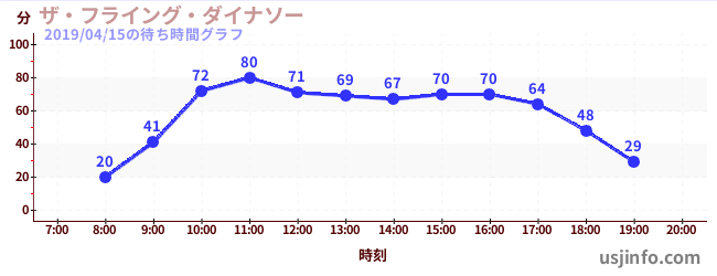 • ザ・フライング・ダイナソー$B$N(B2019年04月15日の待ち時間