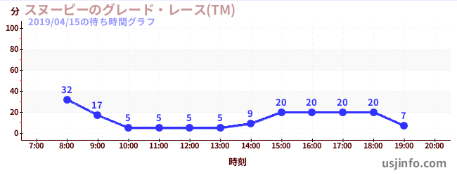 • スヌーピーのグレード・レース(TM)$B$N(B2019年04月15日の待ち時間