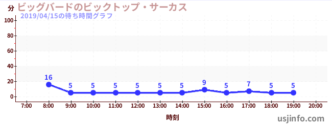 • ビッグバードのビックトップ・サーカス$B$N(B2019年04月15日の待ち時間