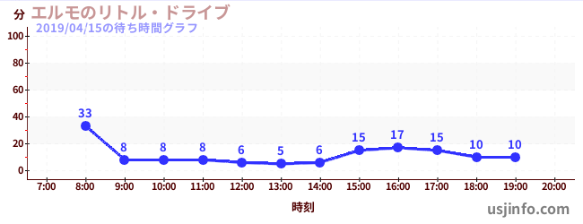 • エルモのリトル・ドライブ$B$N(B2019年04月15日の待ち時間