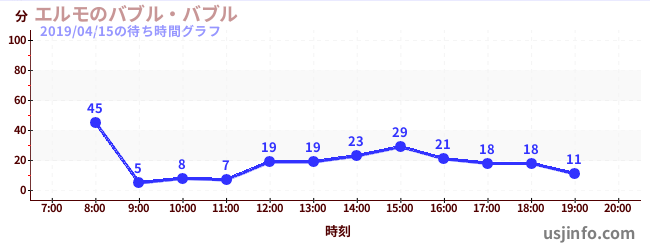 • エルモのバブル・バブル$B$N(B2019年04月15日の待ち時間