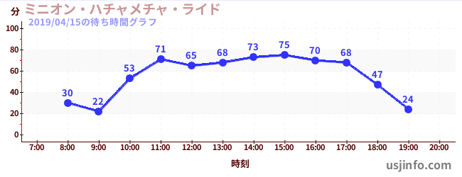• ミニオン・ハチャメチャ・ライド$B$N(B2019年04月15日の待ち時間