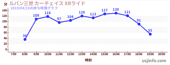 • ルパン三世 カーチェイス XRライド$B$N(B2019年04月15日の待ち時間