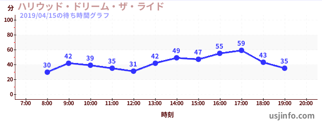 • ハリウッド・ドリーム・ザ・ライド$B$N(B2019年04月15日の待ち時間