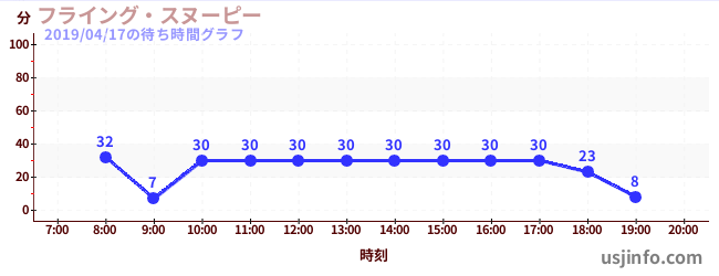 • フライング・スヌーピー$B$N(B2019年04月17日の待ち時間