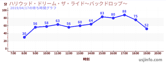 • ハリウッド・ドリーム・ザ・ライド〜バックドロップ〜$B$N(B2019年04月17日の待ち時間
