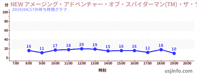 • NEW アメージング・アドベンチャー・オブ・スパイダーマン(TM)・ザ・ライド 4K3D$B$N(B2019年04月17日の待ち時間