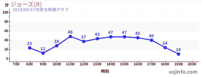 • ジョーズ(R)$B$N(B2019年04月17日の待ち時間