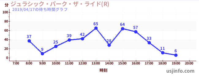 • ジュラシック・パーク・ザ・ライド(R)$B$N(B2019年04月17日の待ち時間