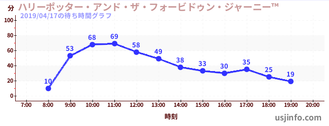 • ハリーポッター・アンド・ザ・フォービドゥン・ジャーニー™$B$N(B2019年04月17日の待ち時間