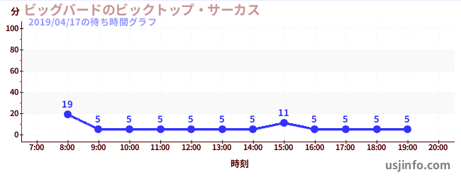 • ビッグバードのビックトップ・サーカス$B$N(B2019年04月17日の待ち時間