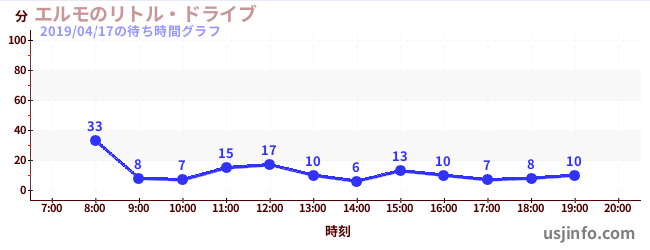 • エルモのリトル・ドライブ$B$N(B2019年04月17日の待ち時間