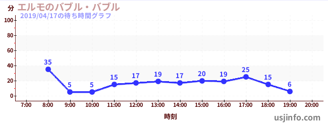 • エルモのバブル・バブル$B$N(B2019年04月17日の待ち時間