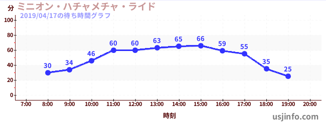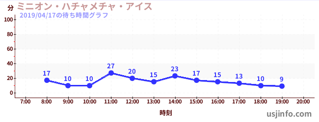 • ミニオン・ハチャメチャ・ライド$B$N(B2019年04月17日の待ち時間