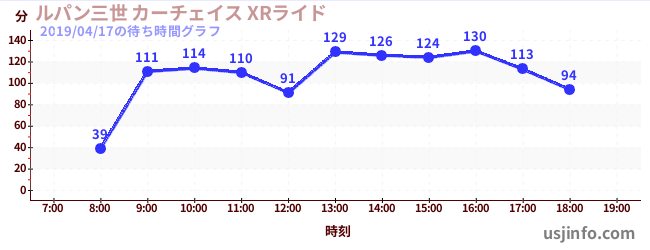 • ルパン三世 カーチェイス XRライド$B$N(B2019年04月17日の待ち時間