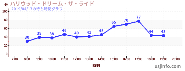 • ハリウッド・ドリーム・ザ・ライド$B$N(B2019年04月17日の待ち時間