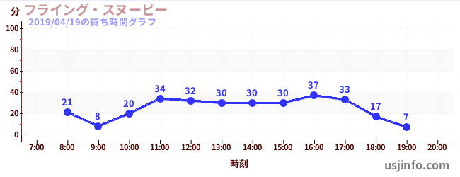 • フライング・スヌーピー$B$N(B2019年04月19日の待ち時間
