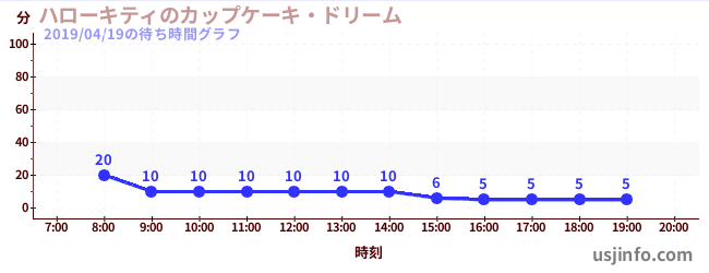 • ハローキティのカップケーキ・ドリーム$B$N(B2019年04月19日の待ち時間