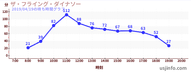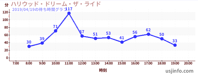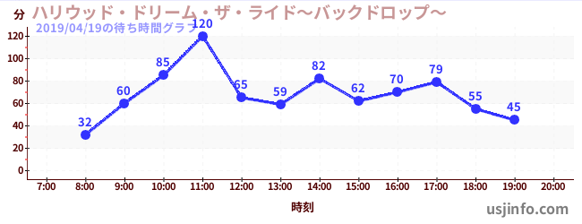 • ハリウッド・ドリーム・ザ・ライド$B$N(B2019年04月19日の待ち時間