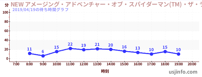 • NEW アメージング・アドベンチャー・オブ・スパイダーマン(TM)・ザ・ライド 4K3D$B$N(B2019年04月19日の待ち時間