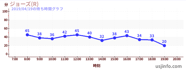 • ジョーズ(R)$B$N(B2019年04月19日の待ち時間