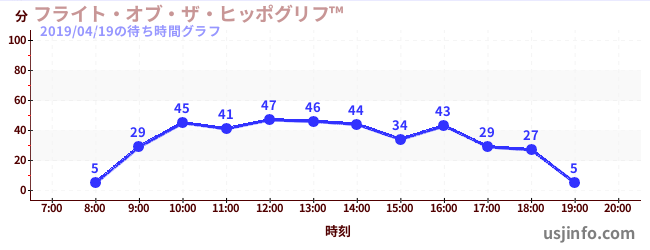 • フライト・オブ・ザ・ヒッポグリフ™$B$N(B2019年04月19日の待ち時間