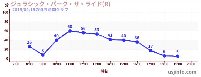 • ジュラシック・パーク・ザ・ライド(R)$B$N(B2019年04月19日の待ち時間